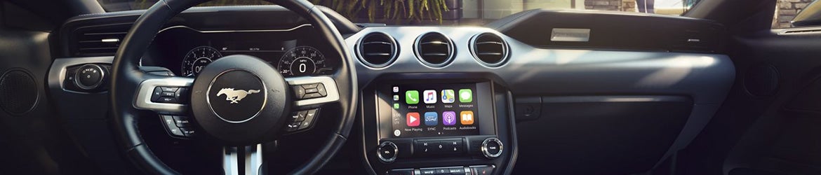 Sit inside the cockpit-style cabin of the Mustang and wrap your hands around the leather-wrapped steering wheel, which comes standard on all trim levels. Several seating configurations are available and allow you to customize the interior to best suit your needs. The touch screen display with Apple CarPlay and Android Auto integration allow you to easily access navigation, playlists, texts, calls, and more. With SYNC 3 voice-activated technology, your hands never need to leave the wheel to open your apps.